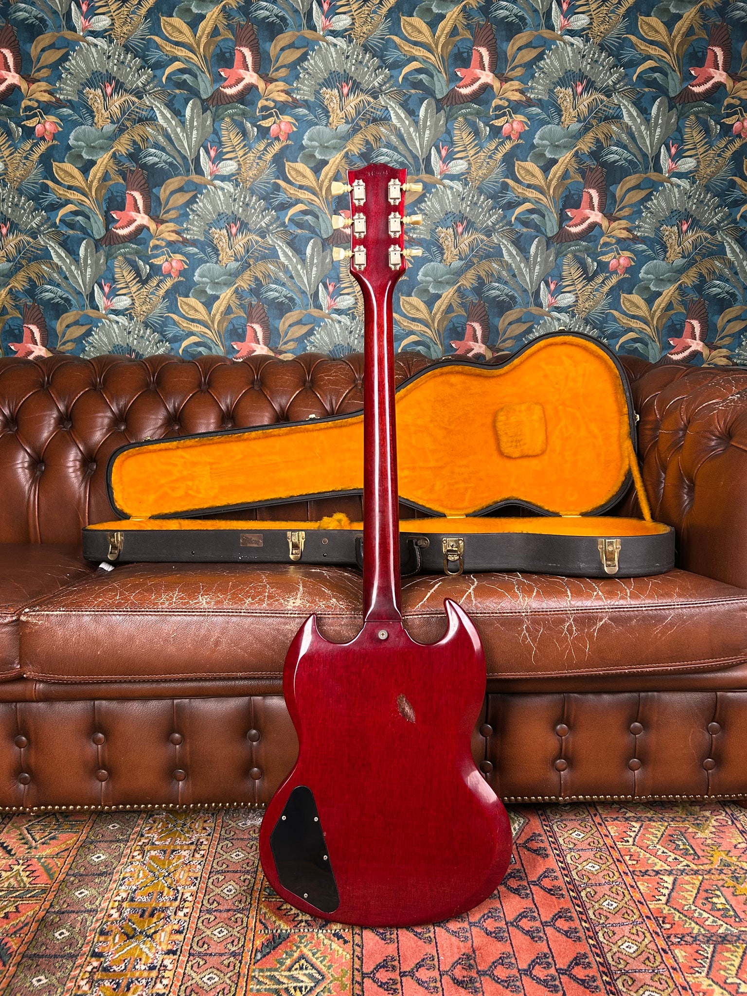 The neck is comfortable to play and has a 40.5 mm nut width. It shows the typical mid-1965 mix of nickel and chrome hardware. A great sounding and great playing SG — a real tone monster you can’t go wrong with.
