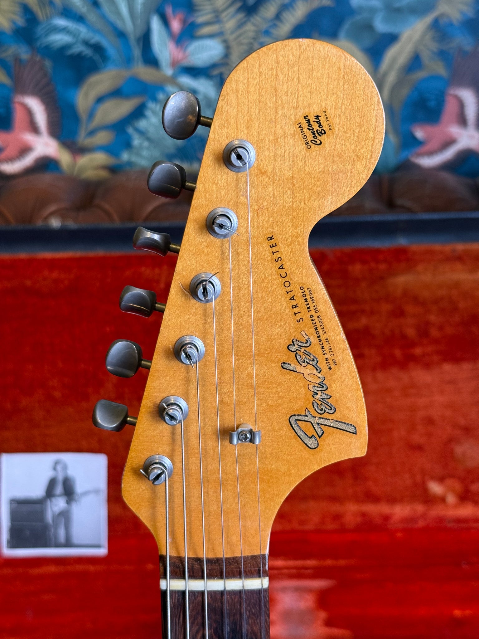 This guitar was bought in the 60ies in Belgium at the legendary shop Euromusic Parys Flore. You can see the shop sticker on the back of the head.